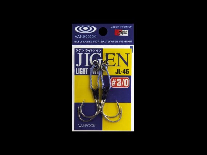 Double Assist Hook en acier High Carbon standard de fer spécialement conçu pour le jigging light (jig de 40 à 100gr). Montage tandem sur assist line de 120lb de même longueur.