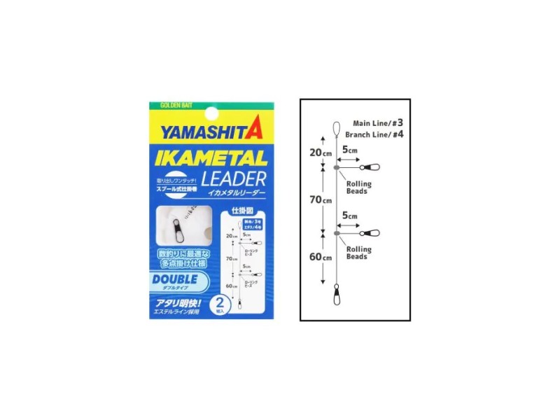 Le IKA METAL LEADER est un montage spécifiquement étudié pour la recherche des calamars avec des montages de type Ika Metal. L'association classique consiste à positionner un squid jig lourd de type Armer sur l'agrafe du bas et de placer une (pour la version simple) ou deux (pour la version double) turluttes non plombées de type upper, toto ou oppai sur les potences positionnées plus haut. Pour la version simple, le modèle "Short" présente une empile de 5cm et le modèle "Long" de 15cm.