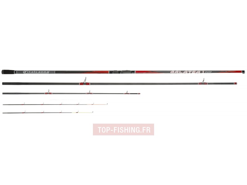 La Galatea est une canne à la fois puissante et très sensible en pointe pour pêcher à l'appât vivant. En italie cette canne 3 + 2 pièces, est le nouvel étendard d'Italcanna pour le Surf type Ground cast, une nouvelle technique de surfcasting avec un lancer sur le côté, qui permet d'atteindre des distances de lancers records. Ce modèle est livrée avec 2 scions :