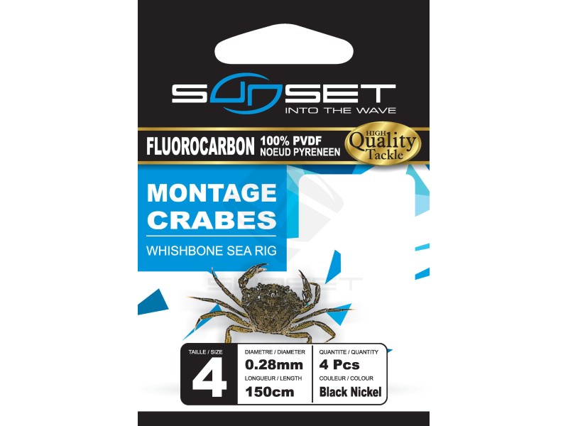Le montage wishbone est composé de deux hameçons montés en « V » pour permettre d’escher un crabe vert entier. Montés avec un nœud Pyrénéen, les hameçons sont forgés renversés à palette et sont ultra résistants. Ils possèdent une pointe très solide et piquante pour les gueules pavées des daurades royales et autres sparidés. Les hameçons possèdent également un revêtement Black Nickel pour éviter la corrosion.