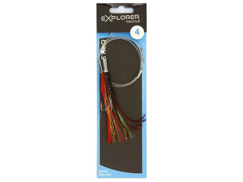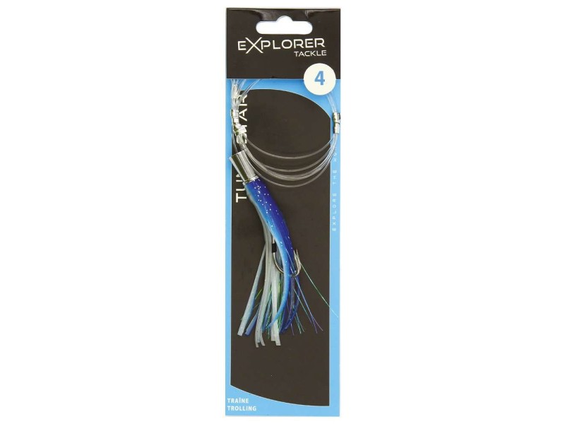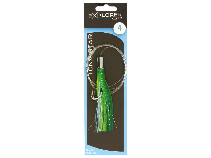 Les Tuna Star Explorer Tackle sont des leurres de traîne de type Big Game. Cette gamme ultra complète de jets est idéale pour la pêche des poissons trophées. Prêts à pêcher, ces jets sont prémontés avec un bas de ligne de 120 cm dont la boucle d’attache est sleevée et ils sont déjà armés d’un hameçon double fort de fer au piquant redoutable. Dotés d’une jupe haute densité de grande qualité, ces leurres sont conçus pour être utilisés seuls ou associés à un appât naturel (poisson entier ou filet).