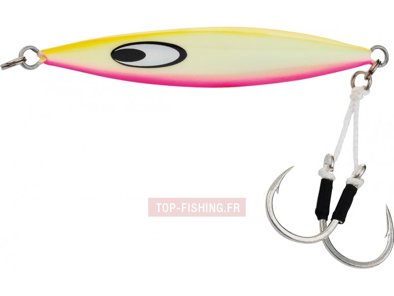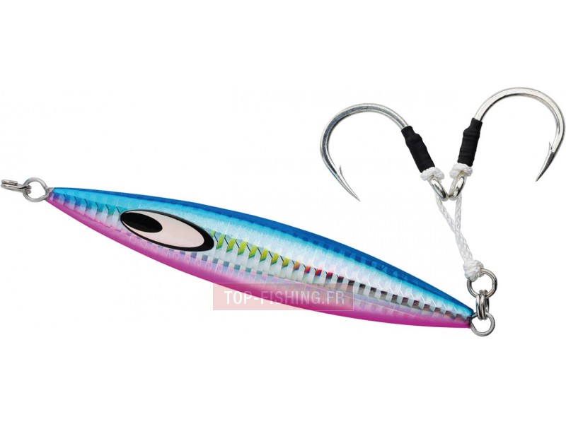 Ce jig au profil effilé offre un équilibrage centré qui en fait un slow jig parfait pour les prospections efficaces sur le fond.En effet son design lui permet de descendre rapidement dans la couche d'eau sans perdre de temps ni ralentir de trop dans le courant. Lors des animations verticales et plus particulièrement lors des phases de relaché il se comporte comme un slow jig typique en papillonnant. Il est livré avec un double assist au montage fort en tresse et avec des hameçons VMC 7264.