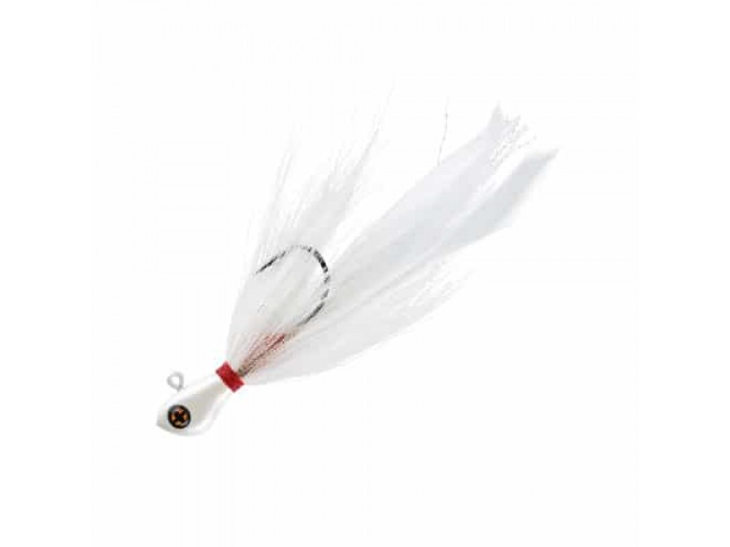 Le poil de cervidé procure volume et mobilité à la jupe tout en limitant la densité du leurre. Cela permet d’obtenir une descente planante et de subtiles vibrations. La jupe est complétée par de longues plumes et des fibres synthétiques (Krystal Flash) pour en augmenter l’attractivité et allonger sa silhouette. Bien que très peu utilisé sous nos latitudes, croyez-nous, le R Jig bucktail jig est un des leurres ultimes à posséder absolument pour faire face aux poissons éduqués et aux conditions difficiles !