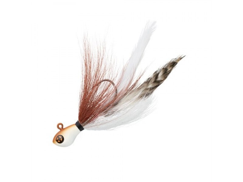Le R jig bucktail jig cumule de nombreux avantages qui le rendent agréable à utiliser. La tête plombée hydrodynamique procure une nage fluide et facilite l’accès aux profondeurs pour les pêches lentes de brochets en lac (+10 mètres). La jupe mêle avec goût fibres naturelles et synthétique et est solidement ligaturée puis sécurisée au vernis époxy afin de résister aux assauts des carnassiers à la dentition tranchante ou abrasive.