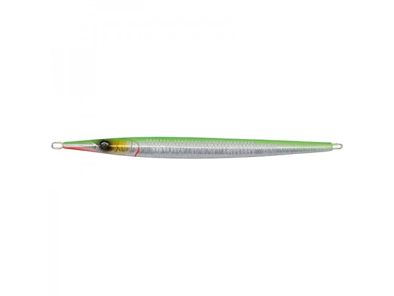 Le Needle Jig est l'imitation métallique parfaite d'une aiguillette! Le corps long et fin se lance très loin et n'a quasiment pas de résistance dans l'eau. Son profil géométrique fait briller le leurre de manière éclatante à la descente, dans de grandes glissades latérales, en envoyant des flashs et des vibrations avec sa nage super erratique. Le leurre est équipé d'un rattle interne qui émet un son grave lorsqu'il est jiggé, attirant l'attention des prédateurs de loin.