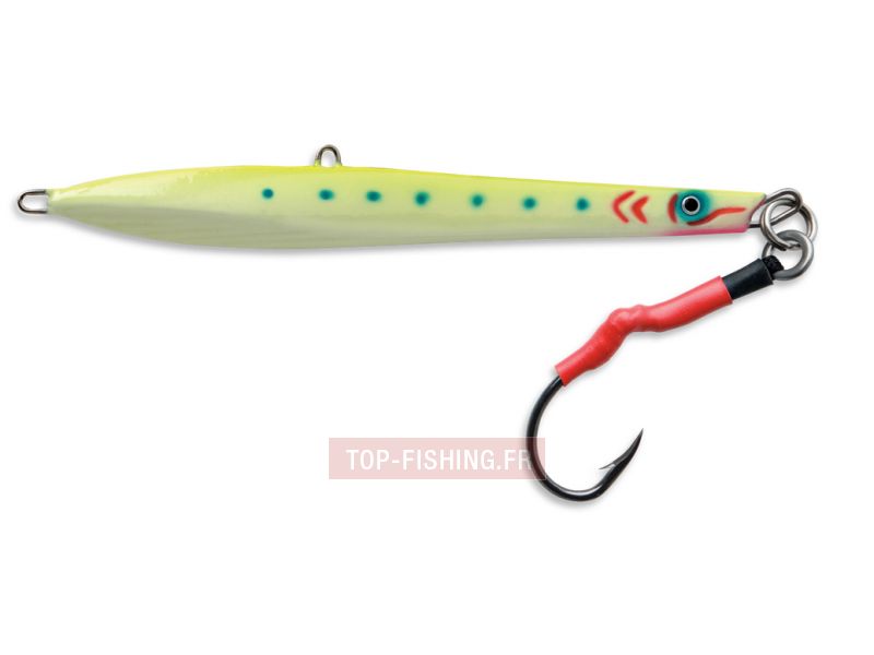Ce jig Williamson est surlesté en queue et il descend très rapidement vers les profondeurs. Son profil effilé offre une résistance très limitée en action de pêche : Vous pourrez l'animer pendant de longues séquences sans fatigue excessive. Disponibles en plusieurs coloris avec effets holographiques. La partie dorsale est recouverte d'un colori fluorescent et les parties striées sont orange phosphorescent. Des robes très attractives… ›› SUITE