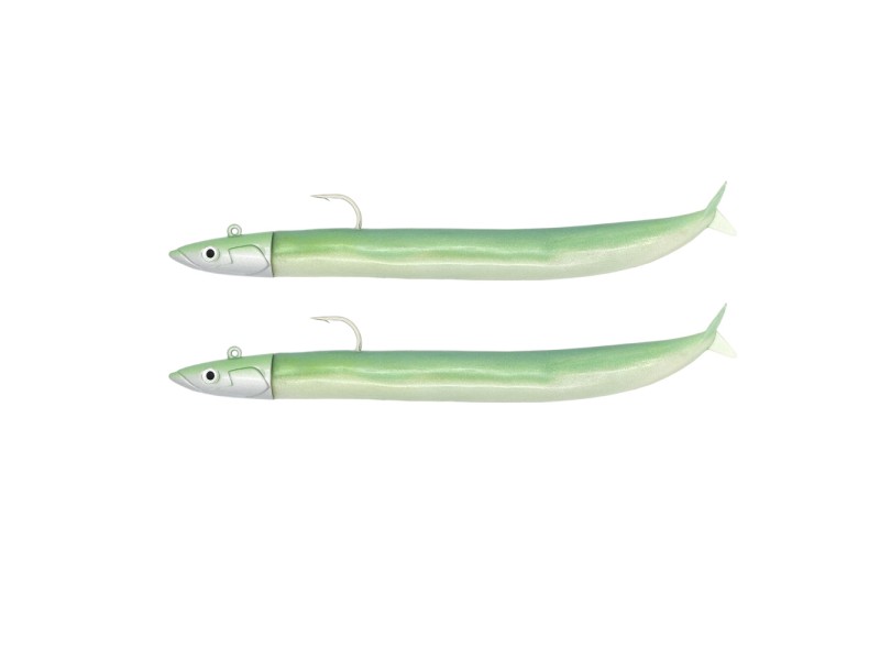 Leurre Crazy Sand Eel 150mm - 2 têtes plombées Shore Vert Nacré 10g