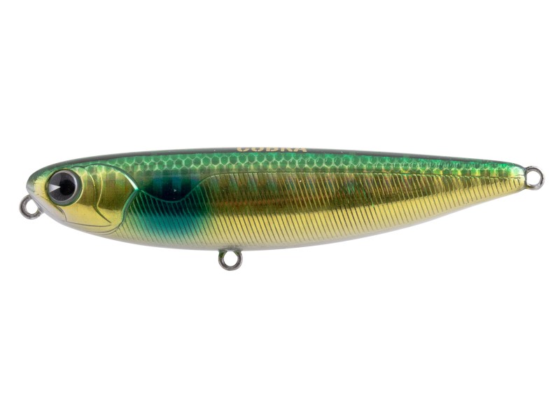 Le Pugachev’s Cobra est un stickbait silencieux extrêmement efficace. Très facile à animer, il réagit au quart de tour aux sollicitations de la canne et possède un Walking the Dog prononcé avec des déviation à près de 180°. Sa stabilité permettra au pêcheur de l’utiliser dans des situations variées et ainsi de cibler tout autant des poissons d’eau douce que d’eau salée.
