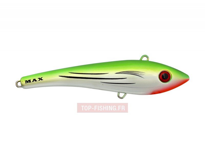 Le Max 190 est aussi à l’aise en traîne (jusqu’à 12 nœuds) qu’en lancer ramener. Son design, affiné en queue, permet une parfaite exposition de l’hameçon simple lors de l’attaque. Le Max a déjà fait à maintes reprises ses preuves sur les chasses de thonidés et de caranguidés.