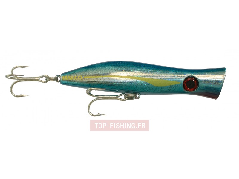 Le Roosta Popper s’impose par ses distances de lancer impressionnantes ainsi que par sa facilité d’utilisation. Le Roosta colle à la surface en produisant l’un des plus gros “popping” du monde. Il ne culbute jamais en avant et résiste aux dents acérées des poissons tropicaux grâce à sa coque de 2 mm d’épaisseur. La taille 195 est à l’épreuve des plus puissants rushs avec son armature inox de 3 mm.