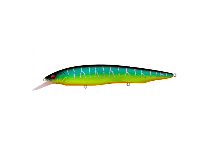 Maintenant décliné en version FW avec des coloris plus adaptés à l'eau douce, le KANATA +1 est un grand jerkbait minnow flottant dont la profondeur de nage maximale se situe à environ 3,20m de profondeur. Son corps mince aux flancs flats est équipé d'un système de transfert de masse composé de trois billes en tungstène lui assurant une parfaite stabilité les jours où le vent souffle particulièrement fort et d’atteindre des distances importantes même par vent de face. Malgré sa taille, le KANATA +1 ne tire pas trop dans la canne et peut être utilisé en prospection rapide à vitesse soutenue sans fatigue excessive. Une récupération linéaire lui procure une action de rolling particulièrement efficace et lui permet de basculer sur ses longs flancs plats en émettant d’importants flashs lumineux attrayant pour les prédateurs.