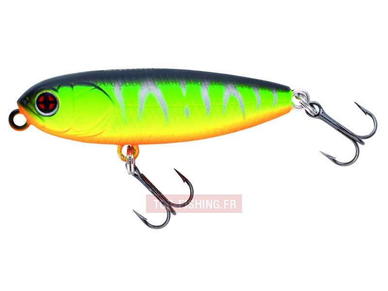 Avec le même objectif de discrétion que nous l’avons souhaité pour le Pop’n Dog 40 F, ces petits stickbaits flottants à l’allure rondelette viennent parfaitement compléter la famille des Naja. Leur section cylindrique équilibrée avec précision leur confère une facilité de mise en action à la moindre sollicitation. Les faire évoluer en zigzags (walking the dog), sauter, plonger, glisser est d’une simplicité enfantine !