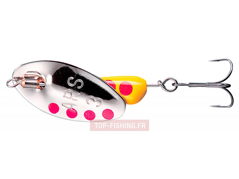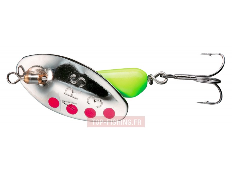 Cette cuillère tournante, développée par Hiroyuki Motoyama pour les petits cours d’eau, tourne dès son contact avec l’eau. Le bord légèrement affûté de la palette aide à une augmentation rapide de la rotation. La goutte d’eau en lest central est dotée d’un jeu important diminuant l’effet de tension de la ligne.