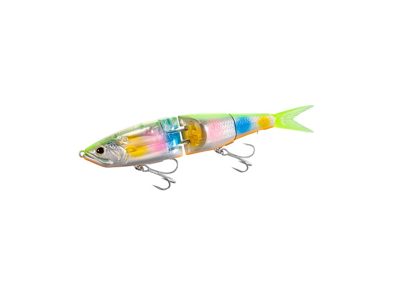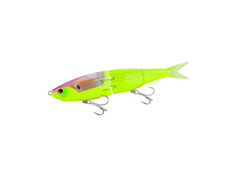 Si vous faites partie du nombre croissant de pêcheurs qui découvrent les avantages des swimbaits de grande taille, vous serez certainement intéressé par l'Exsence Armjoint 190F. La technologie Armajoint augmente considérablement les performances de lancer en permettant au leurre de se plier complètement en deux pendant le lancer, produisant une forme plus compacte et plus aerodynamique. Un système ingénieux de verrouillage des hameçons les empêche de se coincer l'un contre l'autre en l'air. Mais chaque leurre doit être jugé sur ses performances de pêche et l'inclusion d'aimants stratégiquement placés aux extrémités des sections améliore l'alignement, ce qui se traduit par une action de nage plus naturelle, même à faible vitesse. Vous pouvez pêcher avec le Bantam Armajoint 190F Flash Boost lentement et en douceur, ou avec des mouvements plus agressifs, en sachant que vous maximisez vos chances comme jamais auparavant.