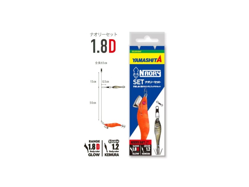 Le Naory Set 1.8 est un montage prêt à l’emploi conçu pour cibler efficacement les bancs de calamars. Il associe une Naory Range 1.8 et une Naory Squish 1.2, une combinaison idéale pour augmenter la visibilité du montage et maximiser les chances de captures, voire de prendre plusieurs calamars simultanément. Deux déclinaisons sont disponibles : le Naory Set 1.8B, équipé d’une Naory Range 1.8 BASIC de 6 g, et le Naory Set 1.8D, doté d’une Naory Range 1.8 DEEP de 7 g pour pêcher plus creux. Le montage mesure 65 cm et dispose d’empiles de 5 mm, offrant un ensemble équilibré, simple à utiliser et immédiatement opérationnel pour la pêche des céphalopodes.