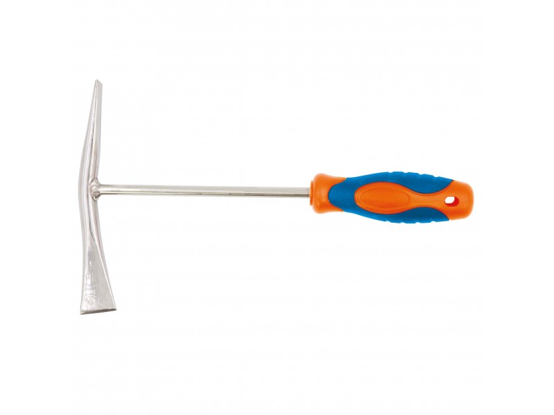 Outil de type pioche / hache de petite taille (27 cm) servant à détacher facilement et précisément les huitres (ou autres coquillages) des rochers sans les endommager. Deux taillants : un horizontal (« coté panne ») et l’autre perpendiculaire (« coté hache »). Disponible en deux modèles :