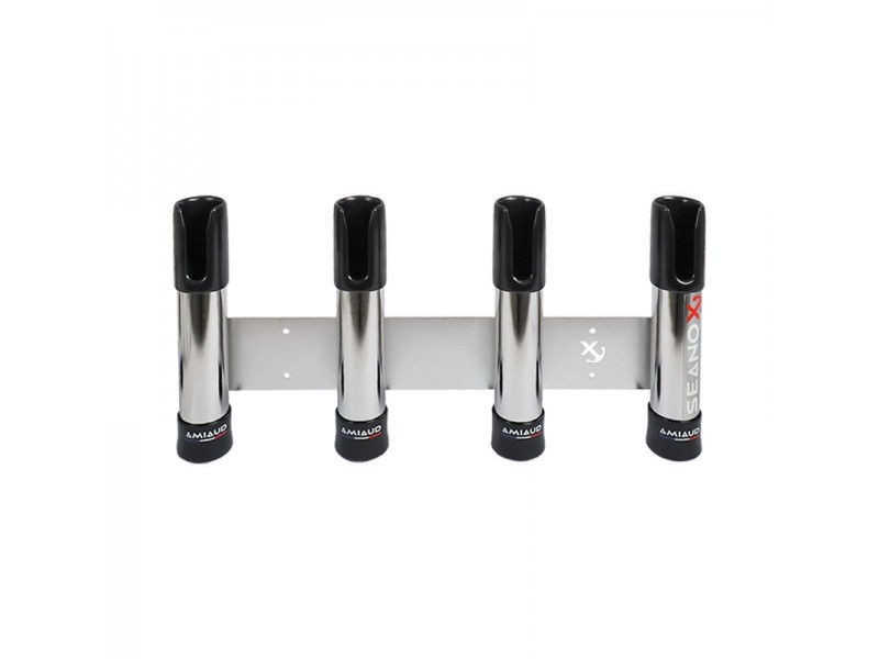 Possibilité d'adapter 3 fixations inox marine soit balcon pour 1 et 2 porte-cannes en montage "dos-à-dos" soit fixations sur glissière pour plat-bord :