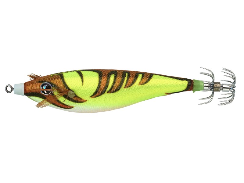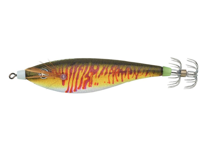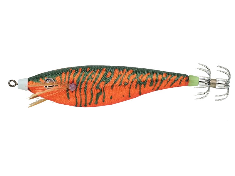 Le leurre Killer Squid a deux formes: Poisson et Crevette pour une meilleure attraction de tous les céphalopodes: Calmars, Bébés Calmars, Seiches, Poulpes etc. Deux types de tissus recouvrent le corps: le tissu Naturel » qui permet une imitation parfaite des espèces réelles et le tissu écaille avec une porosité accrue et des éclats attractifs. Couronne en acier inoxydable grand pouvoir de pénétration et résistance à la corrosion.